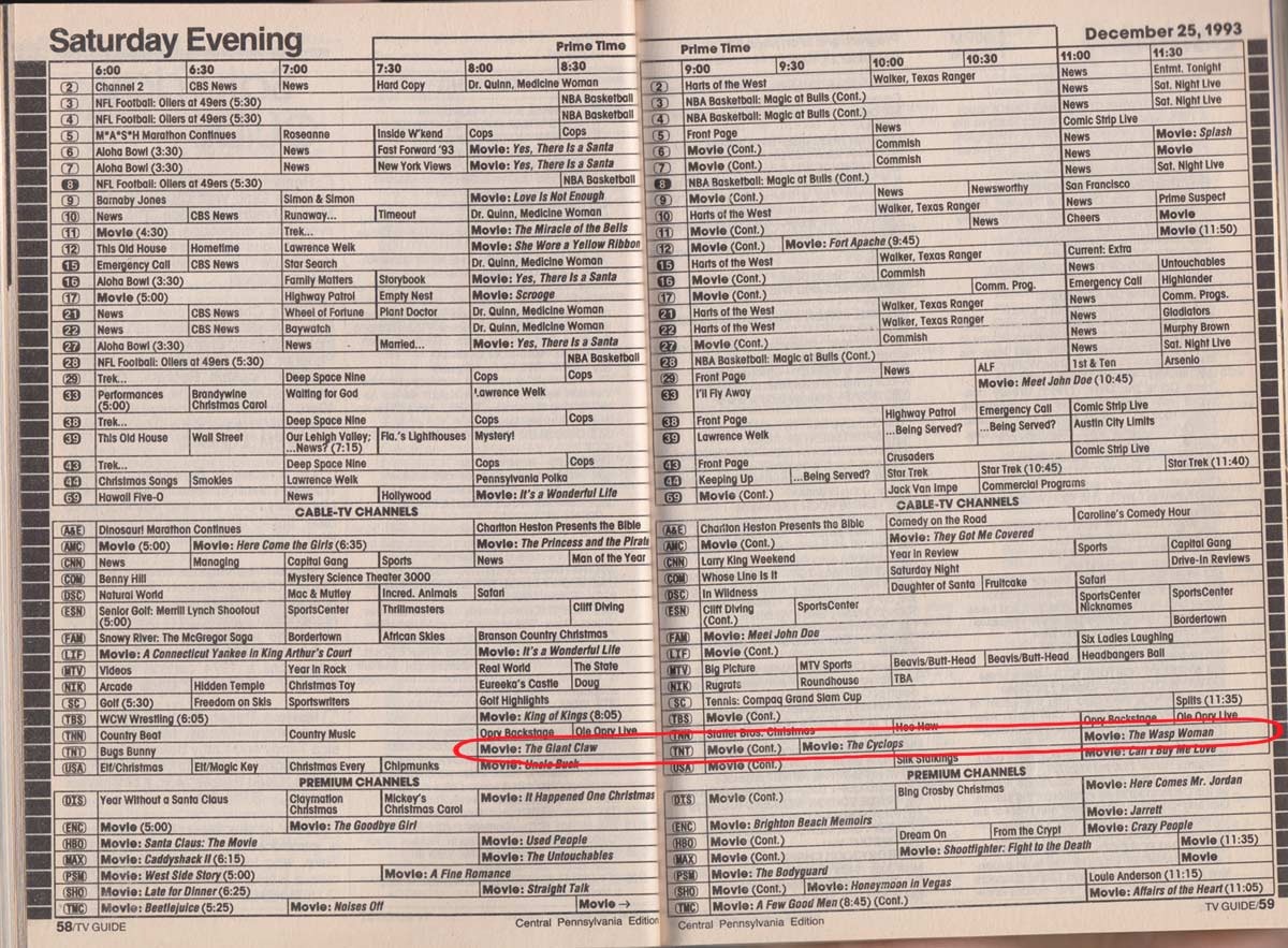 Every Saturday in the 90s and early 2000s, I would scour our Saturday newspaper for three things: new television listings, movie show times and the funnies. Our newspaper, the Guelph Mercury, would send a supplementary television guide that allowed me to plan my week's viewing in advance. Come late November, a thicker guide would be included in the Saturday paper. This would contain all the Christmas, Hannukah and other holiday special episodes to fill my calendar.