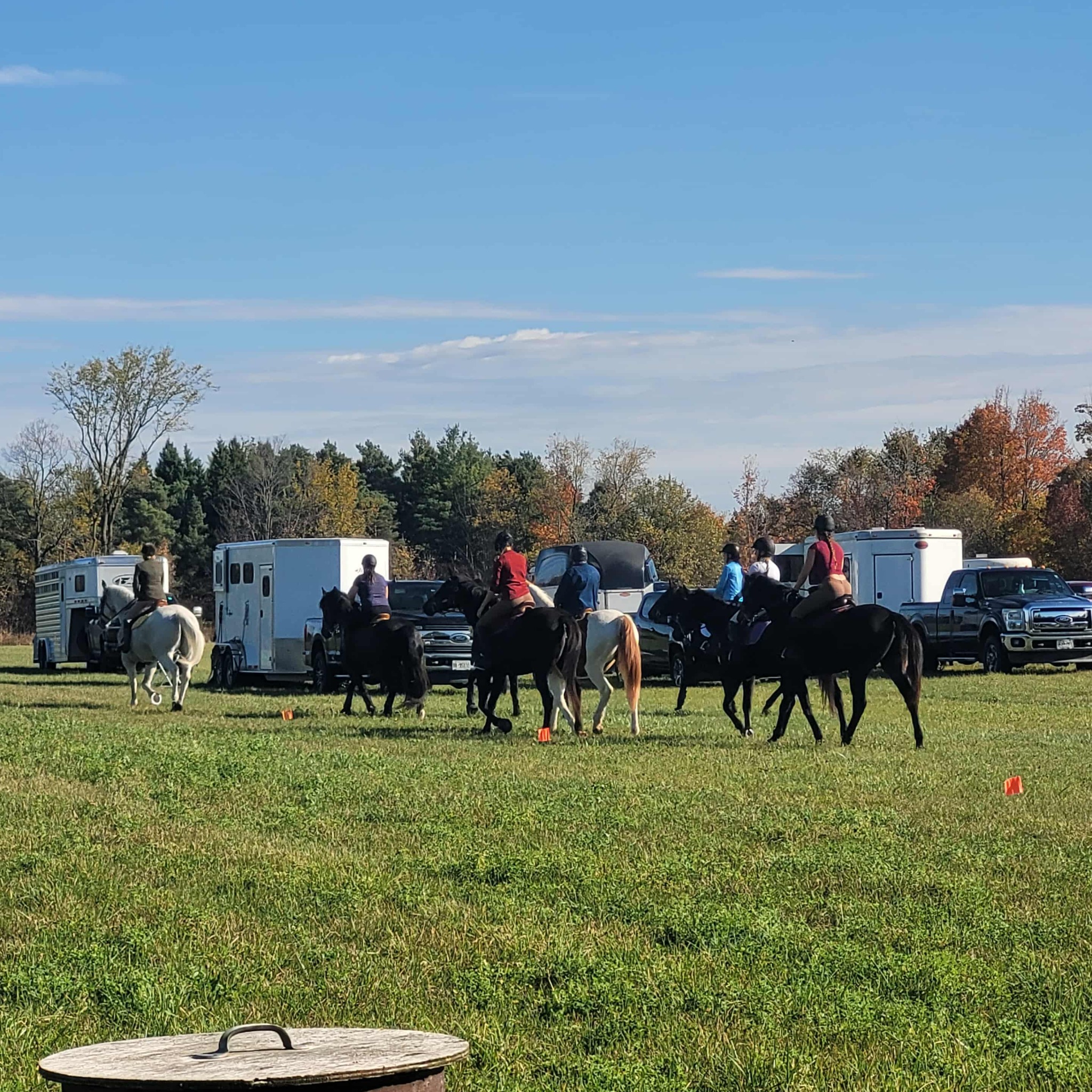 It was a gorgeous day in Centre Wellington - a big difference from the cold, wet and soggy day we had. This time of year, the farmlands make for a perfect day outside. The fresh Autumn air stayed at a comfortable temperature as the sun warmed up our surroundings. As a voluntold member of the team, I set up the banners then sat on a hay throne with a coffee. The volunteers worked the registration while I watched the trailers come in with their steeds. The volunteers were all eager and enthusiastic for a day of fresh air and comradery. Each has their reason for being there to help. Like them, I was excited to be there and add my support.